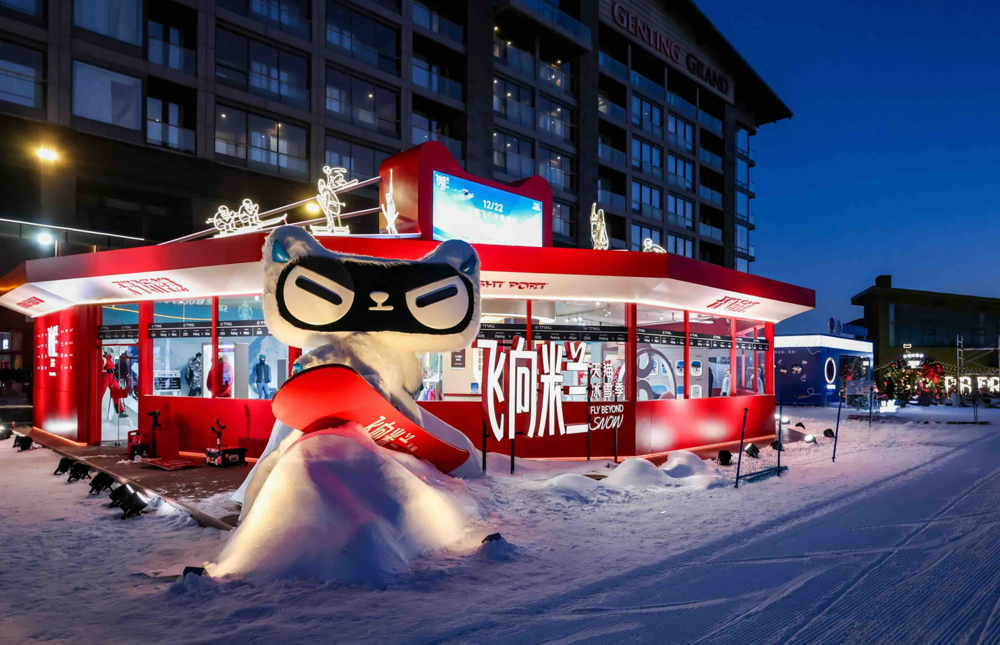 据介绍,品牌正在这里打造一场冰雪季活动,以“飞向米兰”为主题,采用了雪域到米兰的三部曲设定,不仅是秀场创意,也是对中国冰雪产业升级路径的精妙隐喻。在飞行的最高点,指向终极目标米兰,现实呈现了“从中国冰雪消费通向2026米兰冬奥的灵感与潮流中转站”的定位。